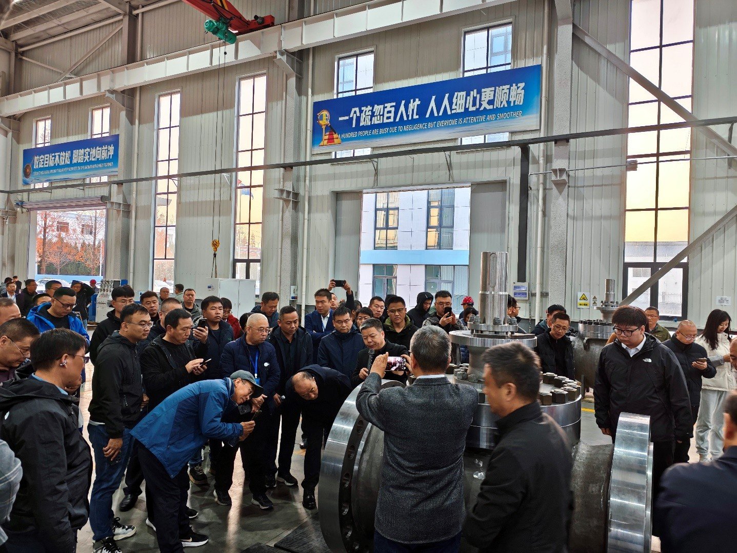会议期间,公司还按照高规格标准接待了150余名参会代表到公司实地参观指导。通过实地展示智能化生产线、研发中心及实验室,以及公司自主研发的各种高端金属硬密封球阀(包括C型耐磨球阀)等核心产品,全面呈现了企业在技术创新、智能制造领域的硬实力,为行业伙伴提供了深度了解J9国际站登录流体的窗口。