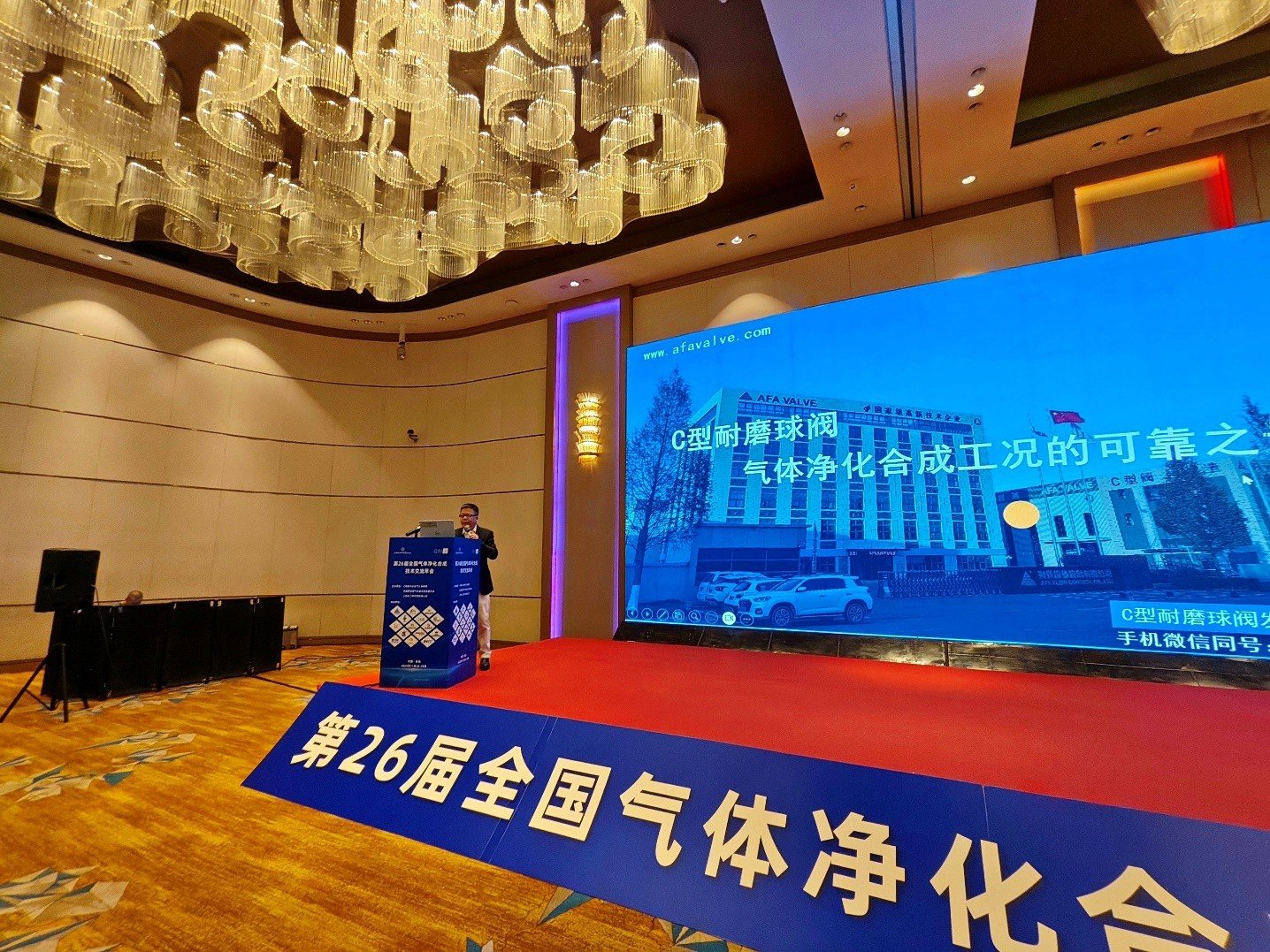 在11月27日的主题报告环节,J9国际站登录流体董事长谢正泽以《C型耐磨球阀:气体净化合成工况的可靠之选》为题,深入剖析了气体净化合成工况对阀门设备的严苛要求,并结合公司自主研发的C型耐磨球阀,从材料选择、结构设计到实际应用案例,系统阐述了该产品在抗磨损、耐腐蚀、长寿命等方面的技术优势。报告内容兼具理论深度与实践价值,引发了与会代表的热烈讨论与广泛认可。