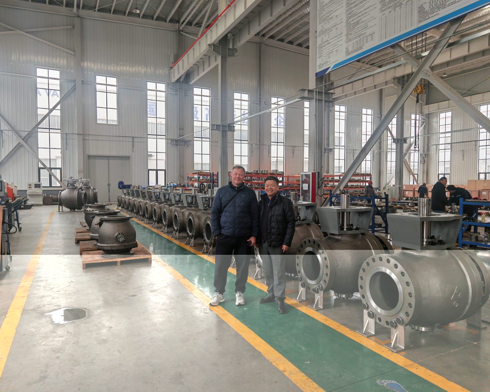 AFA公司董事长谢正泽和技术部、销售部、生产部、质量部等部门负责人接待了来访客人并参加了技术交流。谢正泽董事长向客人介绍了AFA公司发展经历、生产运行、市场开发和远景规划等情况,亲自陪同客人参观了公司各生产车间机加工、球体加工、喷涂、研磨、装配、试压、最终检验、涂装发货等主要工序过程以及加工制造过程中的半成品和生产完成的阀门成品。
